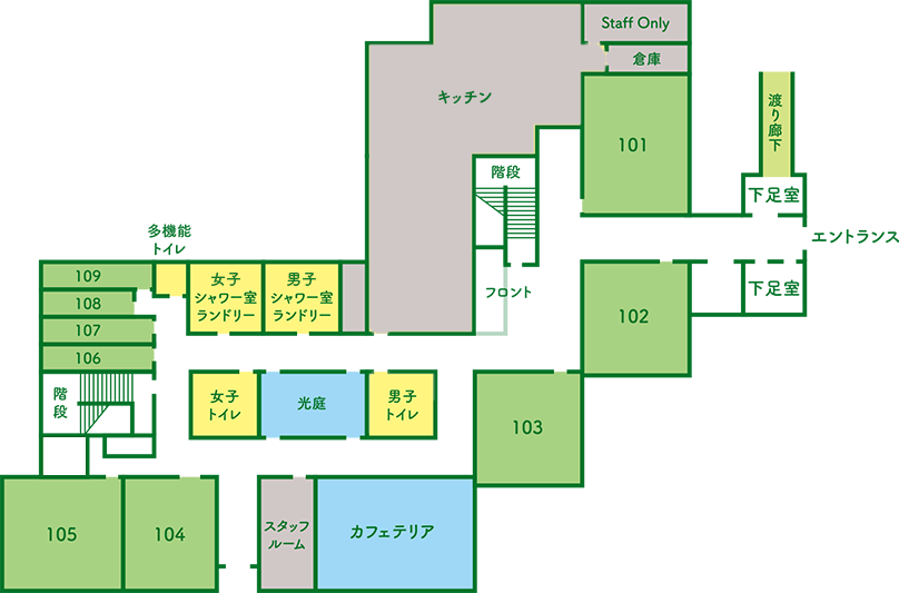 | ランドリー | 【女子】洗濯機:1台(有料)、乾燥機:1台(有料) 【男子】洗濯機:4台(有料)、乾燥機:4台(有料) |